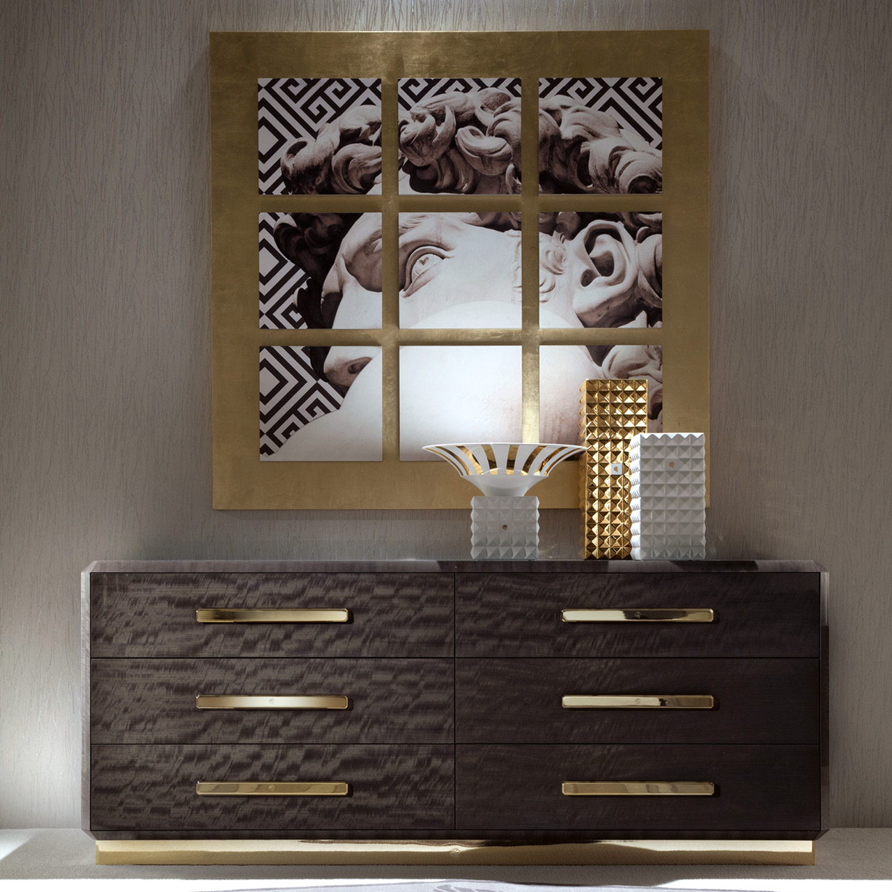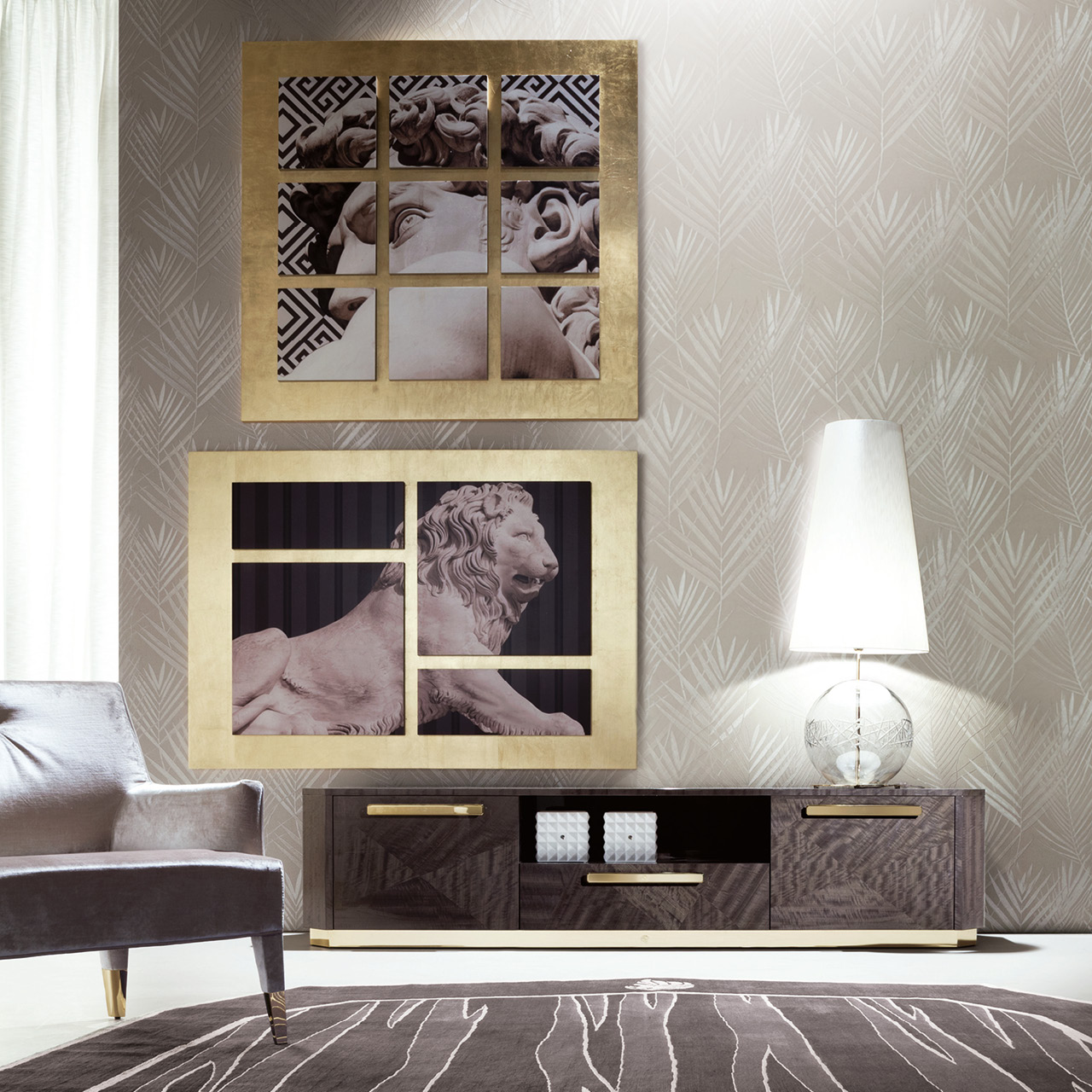 Square painting in gold or silver leaf with 9 embossed panels. Custom made.