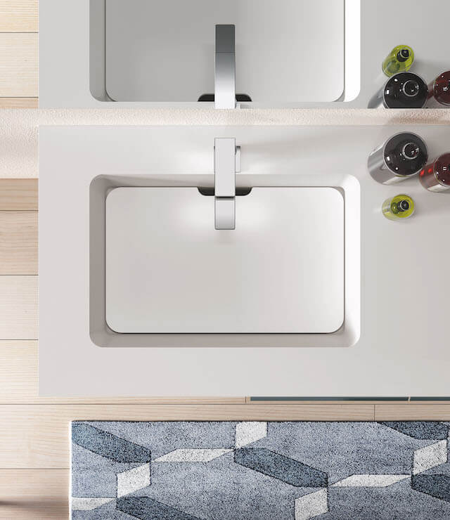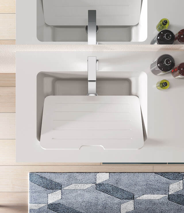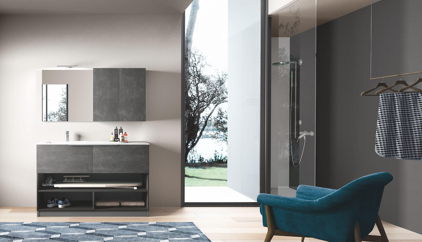 Always under the banner of essentiality, an intelligent proposal for those who do not necessarily have to collect household appliances. A piece of furniture with a wash-tub, which integrates multi-functional open compartments.