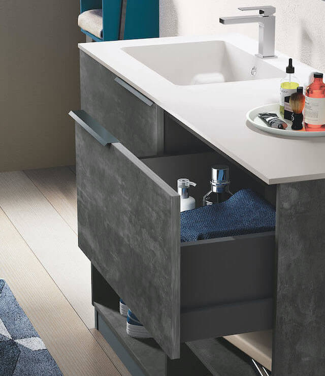The tablet in the rest position makes the wash-house usable as a normal washbasin, the large drawer allows you to store even bulky material.