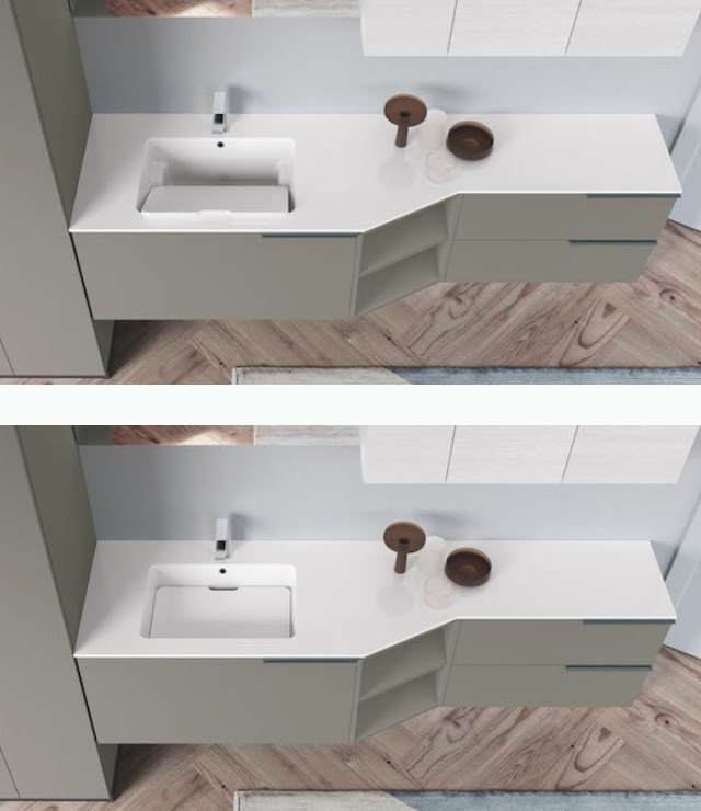A real piece of furniture, which incorporates what is necessary for the laundry, washing machine and ironing board, find space in the spacious closet. The whole is played in shades of gray and white, for a very refined glance. With Puntotre, aesthetics and functionality go hand in hand: the exclusive ironing board of the PUNTOTRE Laundry allows it to be inserted even in a drawer just 35cm wide.