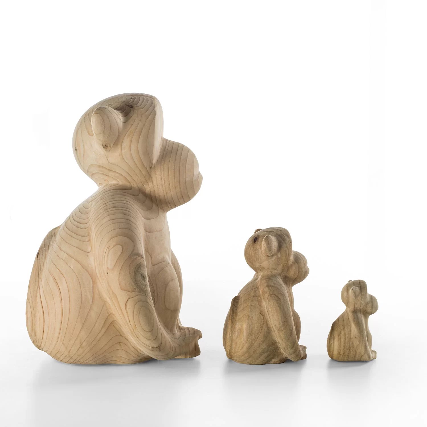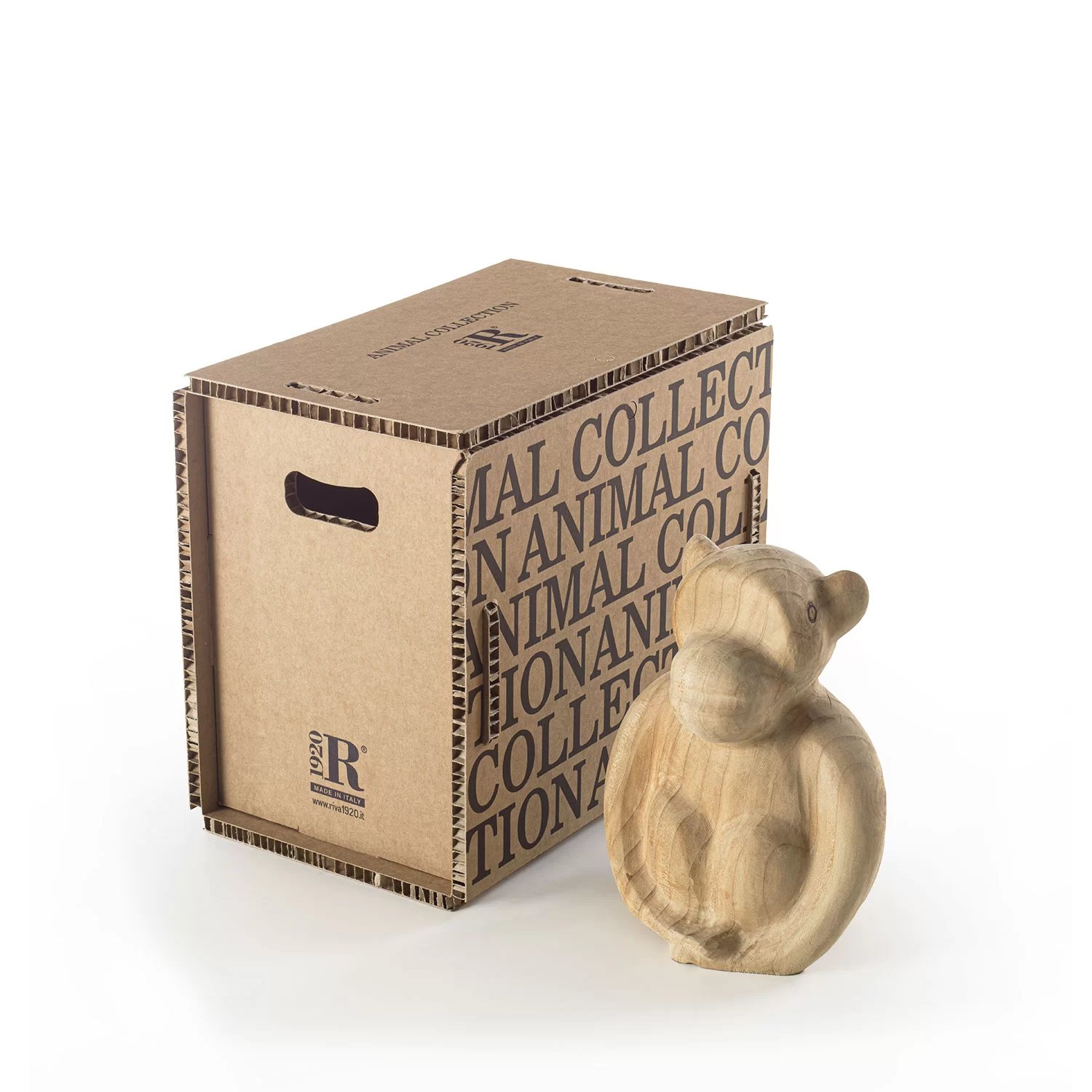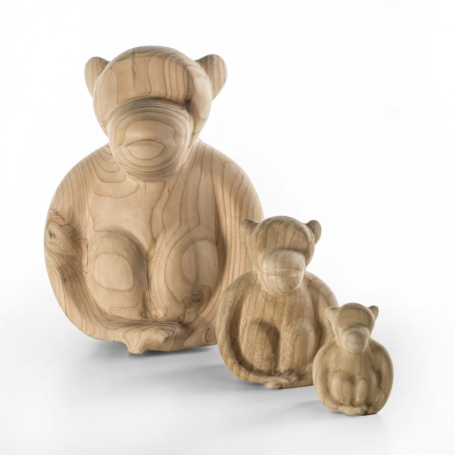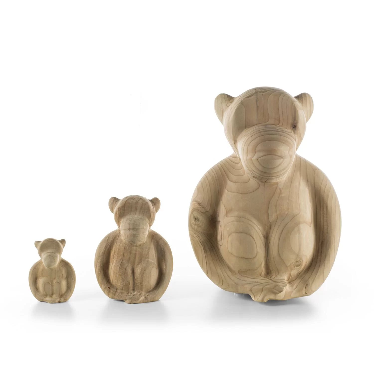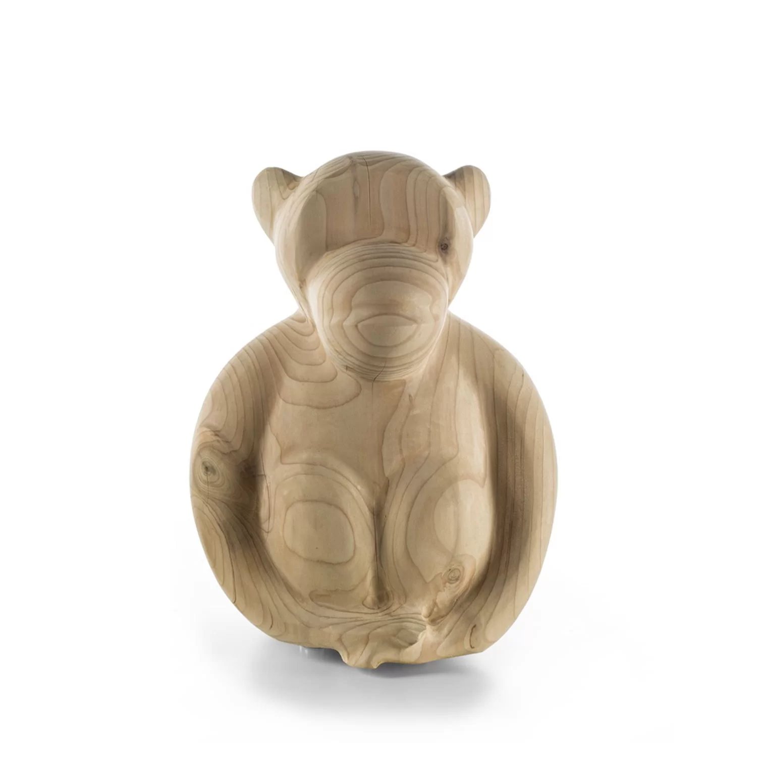 Complemento di arredo in legno massello di cedro profumato lavorato da un blocco unico, il cui design scultoreo si ispira ad una simpatica scimmia. Disponibile in tre dimensioni: big, medium e small.
