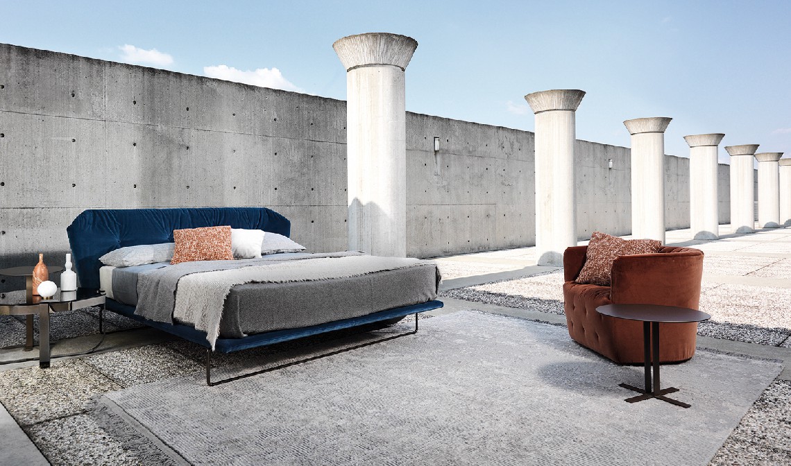 The New York Air bed follows the same line of the sofa collection exhibiting all its retro elegance mixed with a contemporary soul and timeless spirit. A bed of two identities and characterised by the hexagonal shape and quilted detailing of the headboard, New York Air rests on a sled base.