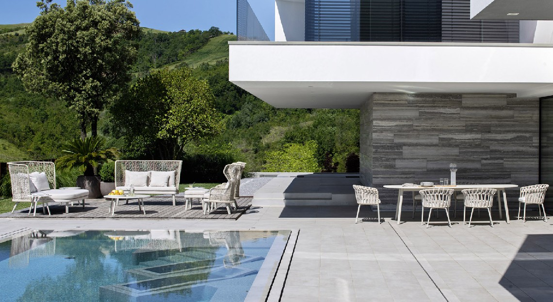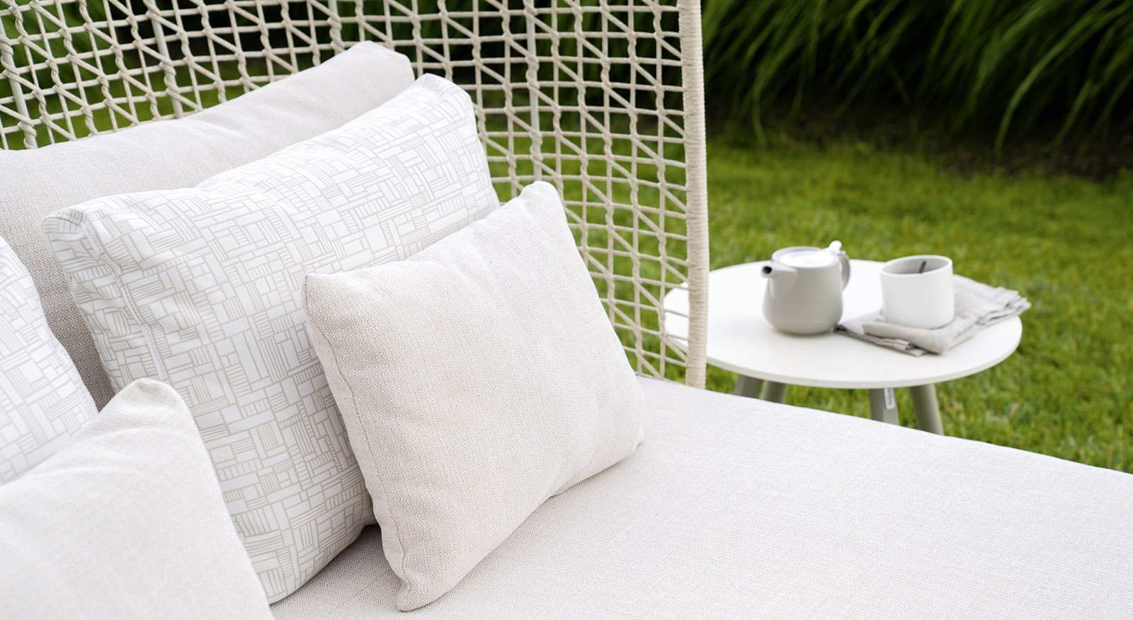 Emma daybed with high backrest combines the relaxation of the sun lounger with the conviviality of the sofa, creating a unique outdoor piece of furniture. The hand-woven backrest is the motif that most characterizes the design of this daybed, a delicate surface where you can rest comfortably and find peace, as well as shelter from the wind and sunlight. Ideal for both residential and contract spaces, the Emma high-back daybed furnishes with style, giving personality to the outdoors.
