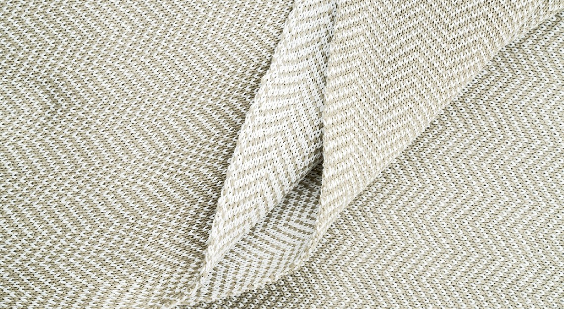 When the sun sets and the air becomes cooler, the Trama blanket gives warmth and comfort to continue enjoying the pleasure of being outdoors. Made of Olyna, a synthetic fiber designed for outdoor use, the Trama fabric is stain-resistant and antibacterial and lends itself to frequent use in outdoor spaces.