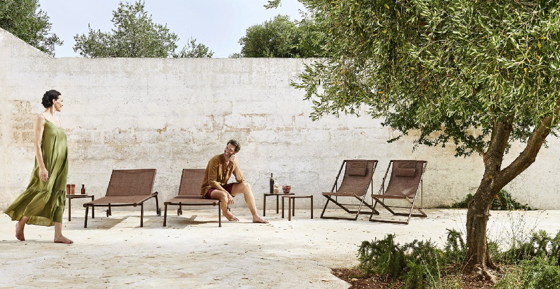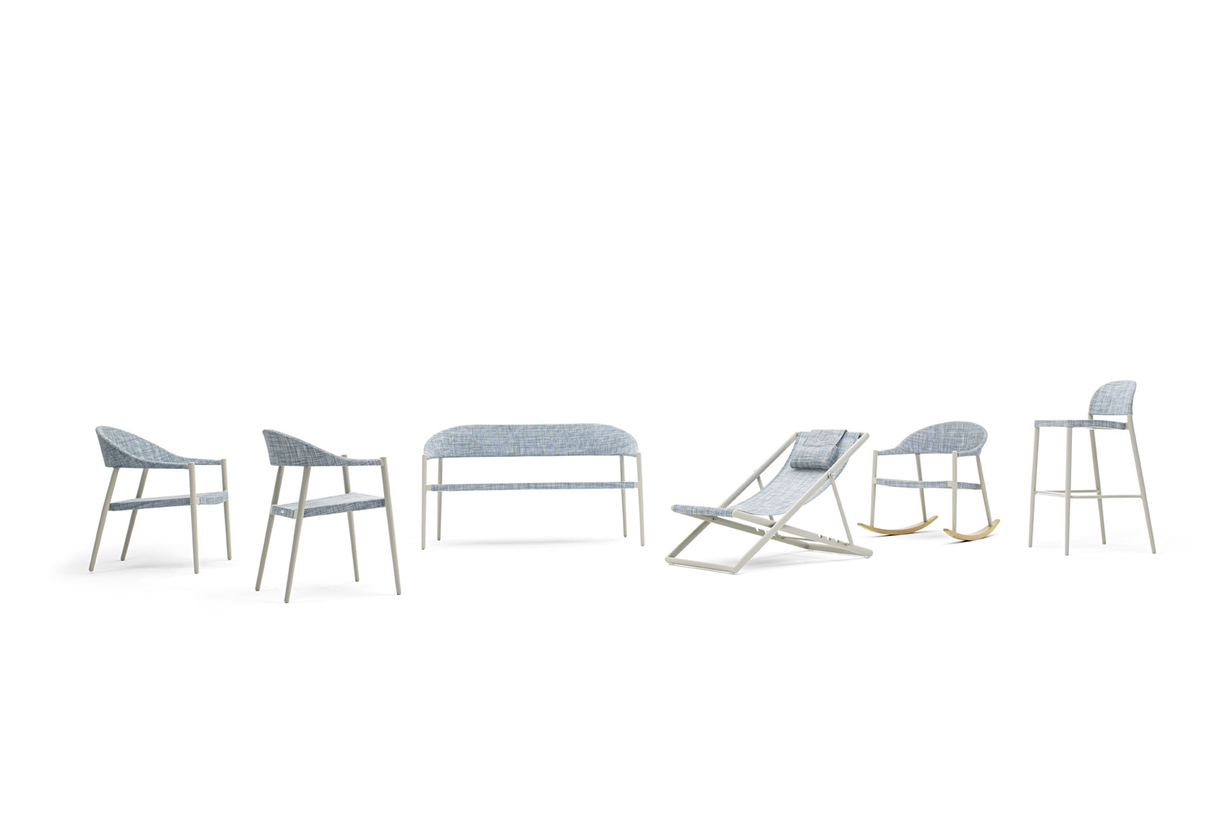 Seating comfortably in the Clever foldable deckchair means experiencing the outdoors in harmony with nature. Seat and backrest are in VAR#TEX, a technical PVC fabric easy to clean, weatherproof and UV light resistant.