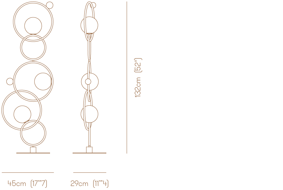 Floor lamp with diffused light. Polished black nickel, polished gold, matte black nickel, polished chrome or light burnished brass structure and white Murano blown glass diffusers. Polished black nickel, polished gold or polished chrome metal spheres.