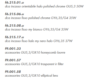 damp location rated recessed light fitting for indoor use. made of oxidised and powder coated or chrome aluminium. the special system of height adjustable wings ables the installation on 10mm/0.4’’ to 30mm/1.2’’ thick surfaces. versions: dca incasso fisso diameter ?210mm/8.3’’ recessed of 80mm/3.1’’ with cylindrical transparent glass, beam 140°, dca incasso orientabile diameter ?210mm/8.3’’ recessed of 135mm/5.3’’ with 18° 40° 58° interchangeables optics, adjustable by 360° on the vertical axis and by 35° on the horizontal axis. wired with 2700K, 3000K or 3000Vb K (designed for high fashion industry) Ra98 led source with les9 up to 19.5W 1110lm and les19 up to 14W 1580lm . 120V 50-60Hz power supply not included, to be installed remotely. components: round bezel diameter ?165mm/6.5’’, square bezel 165x165mm/6.5x6.5’’. accessories: blank square bezel 165x165mm/6.5x6.5’’, fully concealed housing. finishes: my bianco, nero55 and polished chrome.