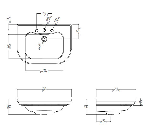 Essential lines shaped by sinuous retro-inspired mouldings represent the refined elegance of a washbasin with pedestal in fine porcelain, available in the versions with 1 or 3 holes.